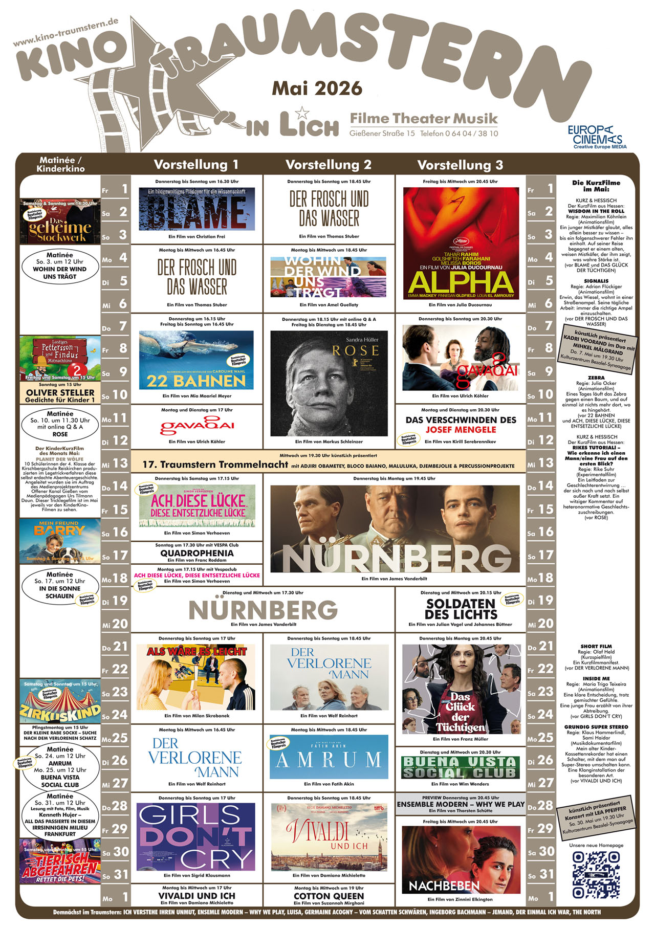 im Kino Traumstern – Programm für April 2026